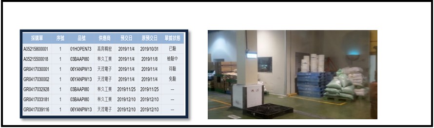 規劃原料儲位,建立倉儲系統並聯結合目前 ERP/SAP 系統。倉儲管理者可即時查詢倉儲狀況,確保庫存資料準確。